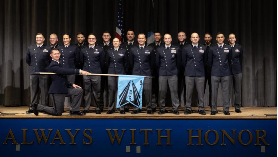 The Space Force’s new dress uniform saw its first official use with the graduation of newly commissioned officers from Officer Training School at Maxwell Air Force Base, Ala., on Thursday, a base press release said. Seventeen guardians graduated into being officers at the ceremony, according to the release. About 100 trainees become officers in the service each year, it said. The uniforms’ first formal use was originally expected to be at a graduation ceremony at Joint Base San Antonio-Lackland this month. The Space Force, which has roughly 9,400 members, announced in September that sizing for the service’s first dress uniform would begin by the end of the year after the uniform spent about four years in development. Since Space Force’s establishment in 2019, its members have primarily worn the Air Force’s dress uniform.