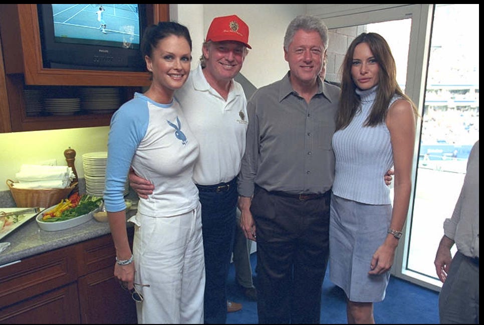 [Sports Illustrated swimsuit model Kylie Bax wearing a Playboy shirt, with Donald Trump, Bill Clinton and Melania Trump (2000)]