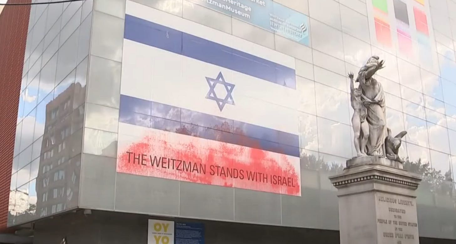 The flag, which hangs on an exterior wall of the US Jewish museum with the words “The Weitzman stands with Israel,” was vandalized with red spray paint early Monday morning. It has already been cleaned following a similar incident on August 18.